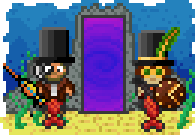 Les PNJ ont revêtu leurs chapeaux et robes de fête pour l'Anniversaire d'Enfer d'Habitica.