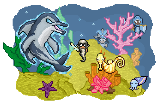 Vous marchez sur les rives de la baie d'Inkomplete, méditant sur le travail intimidant qui vous attend. Une éclaboussure dans l'eau attire votre attention. Un magnifique dauphin s'enroule sur les vagues. La lumière du soleil brille sur ses nageoires et sa queue. Mais attendez....ce n'est pas la lumière du soleil, et le dauphin ne plonge pas dans la mer. Il fixe son regard sur @khdarkwolf.