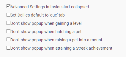 Sur le site web, chaque Habitude, Quotidienne, et tâche À Faire a une section d'options avancées en mode de modification. Même si utiliser les options avancées peut être utile, il n'est pas nécessaire de les utiliser. Puisque les options avancées sont spécifiques à chaque tâche, seule la tâche modifiée est affectée lorqu'un•e joueur•euse modifie les options avancées d'une tâche.