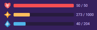 Habiticaにおける進捗状況はレベルと経験値を通じて追跡されます。次のレベルに到達するのにどれだけ経験値が必要かは経験値バーで確認可能です。バーの右側で、今のレベルで獲得した経験値とレベルアップに必要な経験値の正確な数値が見られるでしょう。