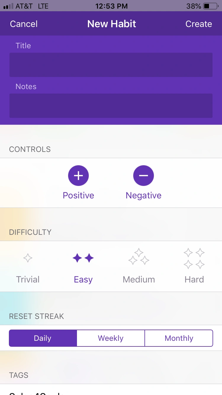 - For Habits、 you can set whether the habit has positive or negative actions or both、 and the frequency at which the streak counter resets.