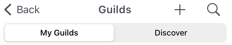 - List-type toggle switch: The Guilds option can show two different lists: "My Guilds" and "Discover". The switch to toggle between them stretches horizontally across most of the screen.