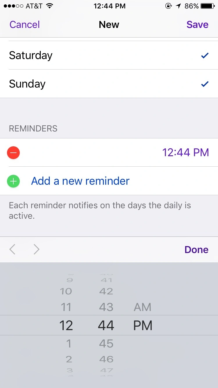 Checklists can be accessed by tapping the colored box on the right side of the Daily; once the Daily is expanded、 checklist items can be ticked off normally. To add checklist items、 tap the white portion of the main Daily box、 tap the green plus button、 and type in the contents of the checklist item. Checklist items can be rearranged by holding down the three lines to the right of each checklist item and moving to the item to its appropriate place in the checklist.