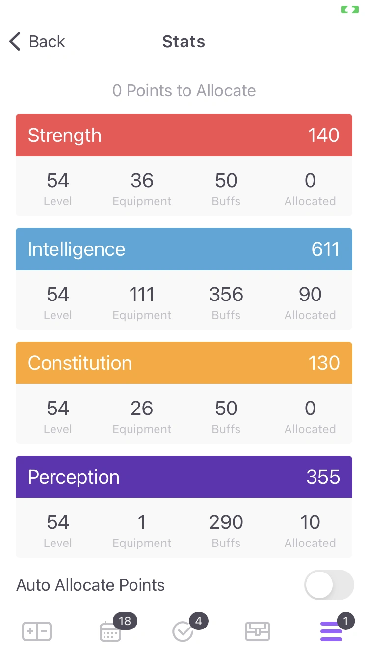 Your Habits are listed under the Habits menu. You can tap the + or - as you normally would on the website to score a good or bad habit. Habits can be edited by tapping on them、 and you can search for a specific Habit by using the search bar.