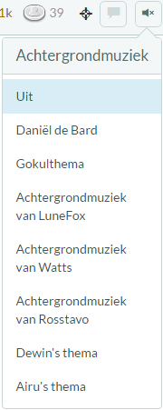Als je op het achtergrondmuziek icoon klikt, krijg je een menu waar je ofwel "Uit" kan kiezen of een van de beschikbare geluid thema's. Achtergrondmuziek zorgt voor verschillende geluidseffecten wanneer je taken of beloningen aanklikt. | |