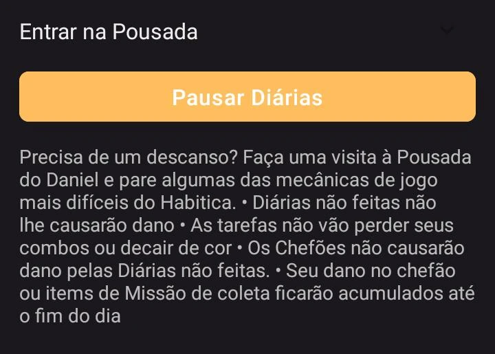 Suas Diárias são listadas na guia Diárias, com combos (>>) exibidos para cada uma delas. Você pode marcar suas Diárias pressionando suas respectivas checkboxes[3] à direita do nome das mesmas. Diárias podem ser editadas pressionando em cima delas.