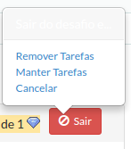 Para deixar um desafio, devemos clicar no botão vermelho “Sair”. Um pop-up irá aparecer com as opções de remover ou manter as tarefas associadas ao desafio e a opção “cancelar”.