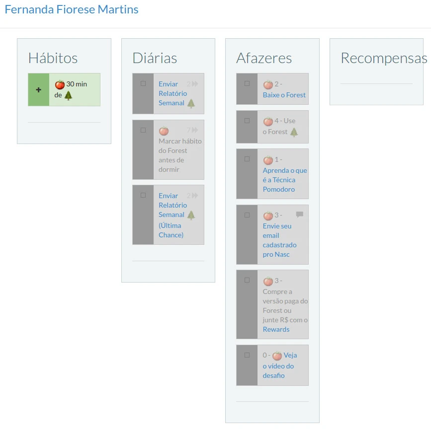 Ao decidir se juntar a um desafio, devemos clicar no botão verde "Participar". Os hábitos, diárias, afazeres e recompensas do desafio serão automaticamente adicionados às nossas listas.