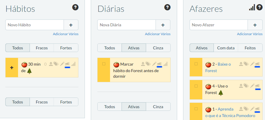 Se precisamos de um dia de descanso e não queremos tomar dano por uma diária não cumprida durante o desafio, podemos adicionar uma Lista para uma diária de desafio com um item e marcar esse item em dias que não queremos fazer a diária, mas sem obter punição por isso. Os combos serão perdidos e nenhuma experiência e ouro serão ganhos, mas não perderemos vida.
