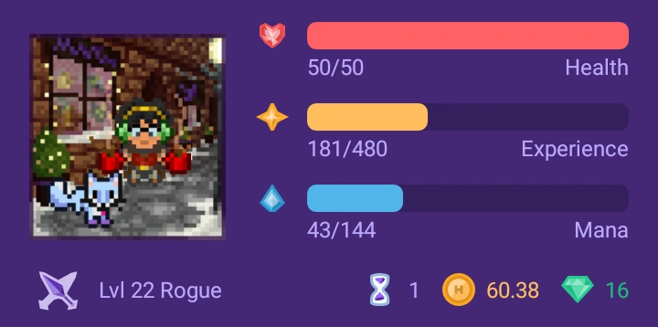 This Rogue has enough mana to cast all their skills except Stealth; they also own a transformation item (the Snowball)