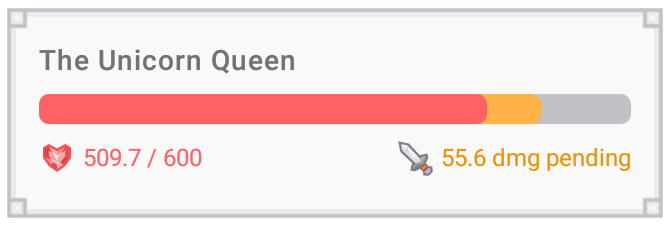 Часть шкалы здоровья босса, окрашенная в жёлтый цвет показывает урон который вы ему нанесли