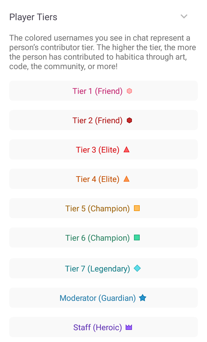 Under the Chat tab of the Tavern page, you can access the Tavern Chat. Tavern Chat displays avatars next to chat messages, and player names are colored according to their contributor tiers. Clicking on a player's name will open their profile.