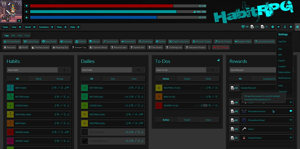 Screenshot of Habitica Darker