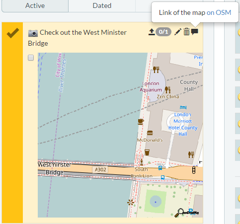 Найдите нужную позицию на карте OpenStreetMap.org и замените координаты и масштаб в приведенном примере на свои. Для https://www.openstreetmap.org/#map=19/51.50131/-0.12029 здесь 19 - уровень масштабирования, а два других числа - координаты |