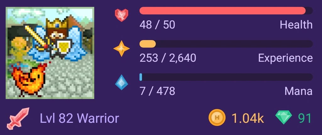 Players earn gold points by completing Habits, Dailies, and To Do's, selling excess inventory items like food, eggs, and hatching potions in the market, and by completing certain quests. Rogues can also use the Pickpocket and Backstab skills to get gold bonuses from their tasks.