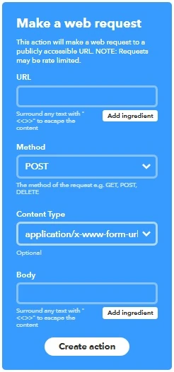 - There is an issue between glitch and IFTTT, so fill Additional Headers with "User-Agent: IFTTT" if you don't want to see "a 403. Unable to make web request."