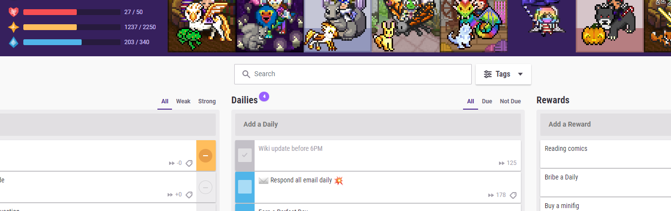 Inspired by the no-longer-working Hide Habitica To-Dos Column, except this one lets you hide any combination of columns you want! (Even all of them! ...But why would you want to do that?)