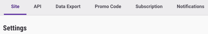 On the website click on the User Icon in the top-right corner and then on "Settings". The Settings page has the tabs listed below; this article covers the default ("Site") tab.