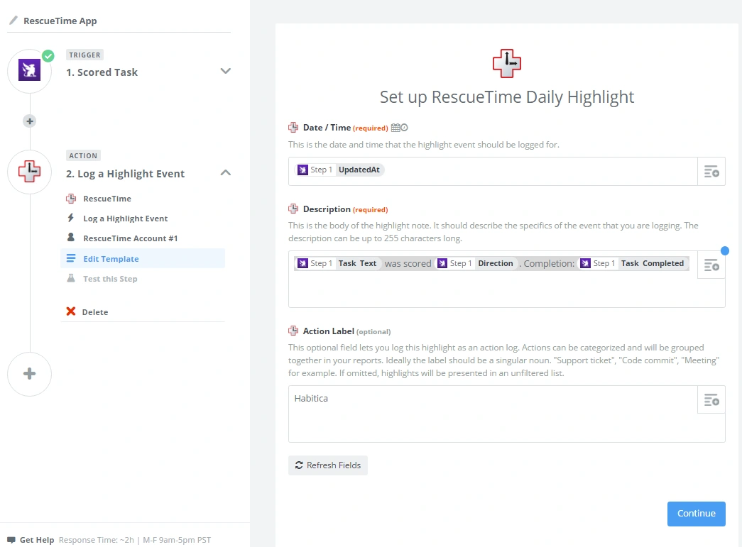 Choose RescueTime as the Action App.