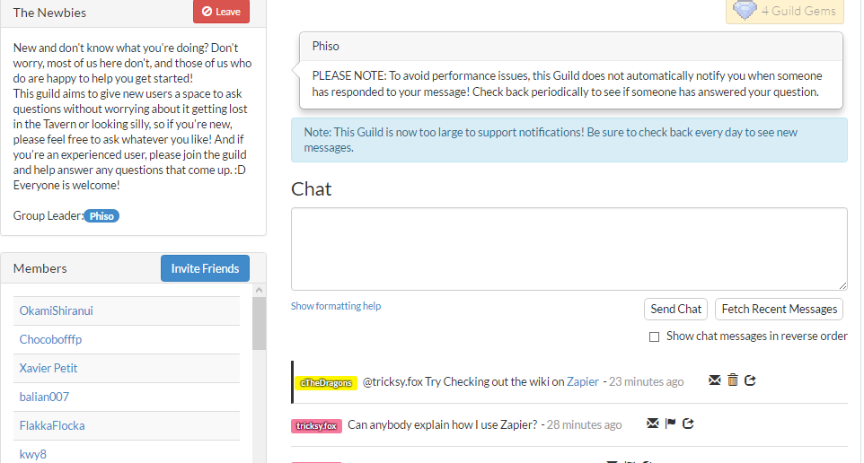 Guilds and the Tavern were removed from Habitica on August 8, 2023. If you know the status of the guild(s) mentioned in this page, please update their links and remove the template {{Contains outdated guild links}} from this page. Thank you!