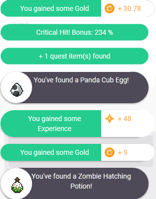 玩家会在获得金币、经验值或者掉落时收到通知。它们也会在升级时收到通知,或者在他们所属的团队/队伍/公会有新的活动时收到通知。